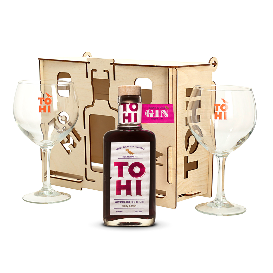 TOHI Aronia Infused Gin kinkekarp + 2 klaasi
